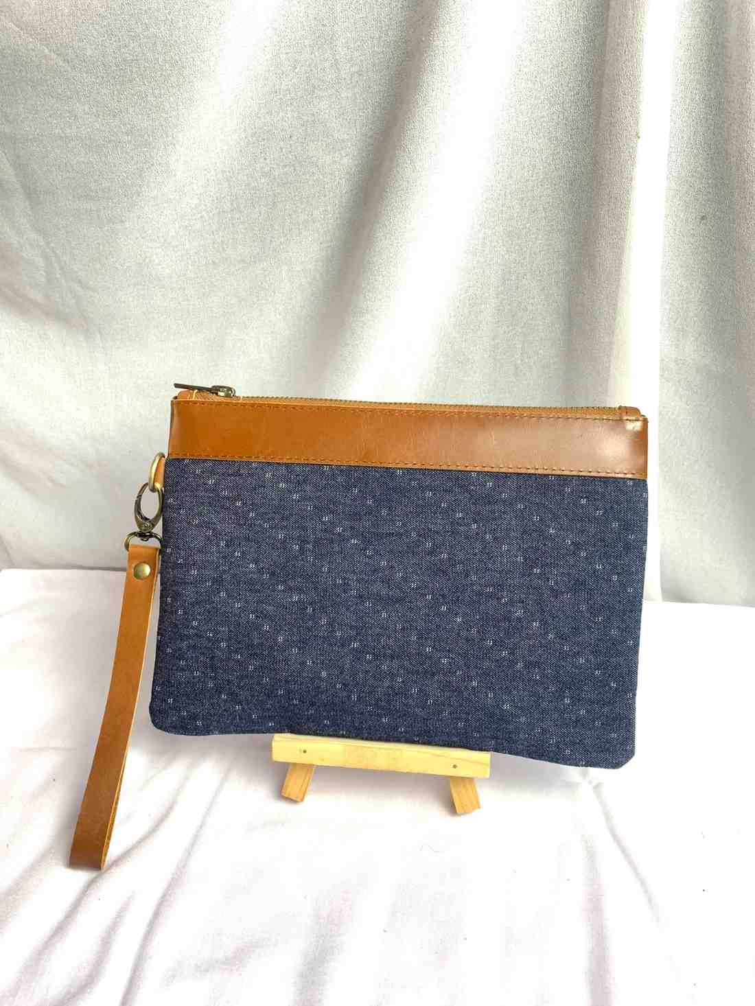 Jenna Pouch Kombinasi Kulit dan Jeans Denim adalah pouch stylish yang menggabungkan kekuatan kulit premium dengan kesan kasual dari bahan denim. Desainnya yang ringkas namun elegan membuatnya cocok digunakan sebagai dompet tangan, tempat makeup, atau organizer kecil di dalam tas. Kombinasi tekstur kulit dan jeans memberikan tampilan yang unik dan modern, cocok untuk kamu yang ingin tampil beda dan tetap praktis. Ideal untuk aktivitas harian maupun acara santai, Jenna Pouch adalah pilihan tepat untuk mereka yang mencintai gaya kasual yang tetap berkelas.