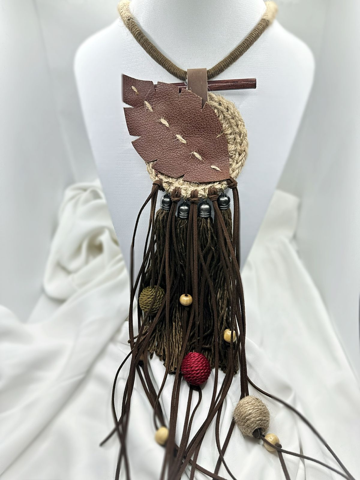 Perkenalkan Kalung Etnik Rajutan Rami, aksesori handmade yang memadukan kekuatan alam dan keindahan seni tradisional. Terbuat dari benang rami alami yang dirajut dengan detail halus, kalung ini menghadirkan tekstur rustic yang khas.