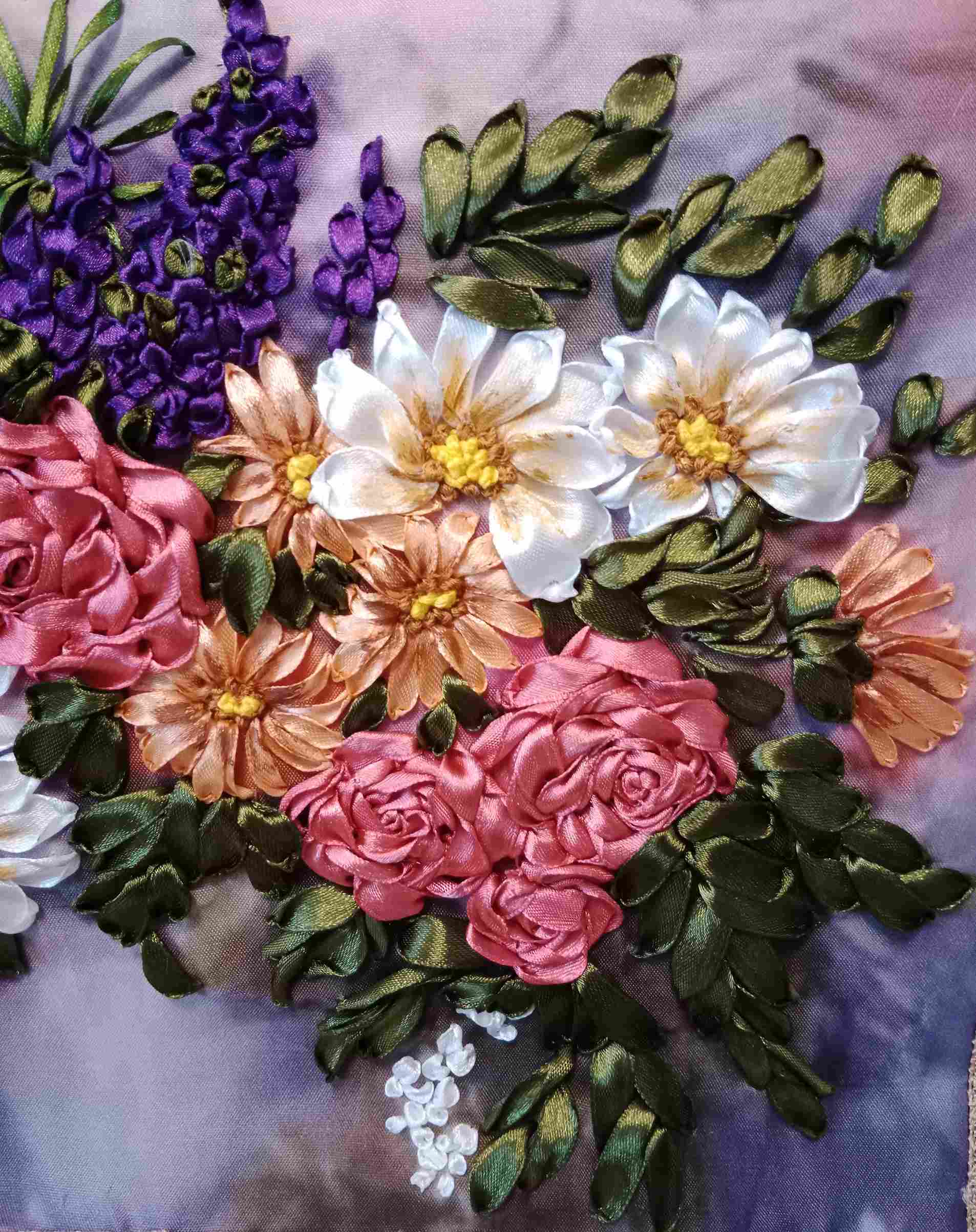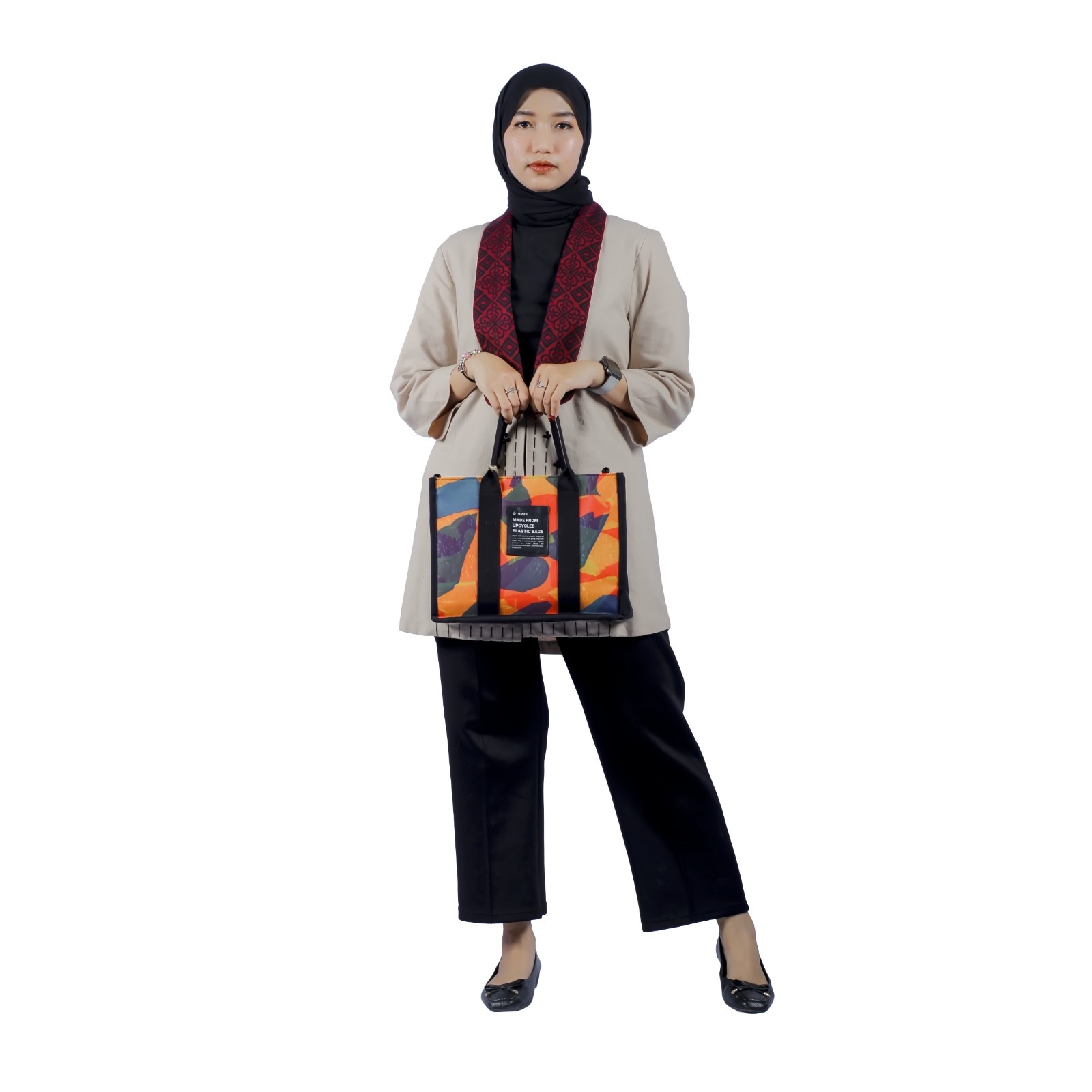 Totebag Berbahan Dasar Goni Sintetis Dihiasi Lukisan Bunga Sulam Pita.