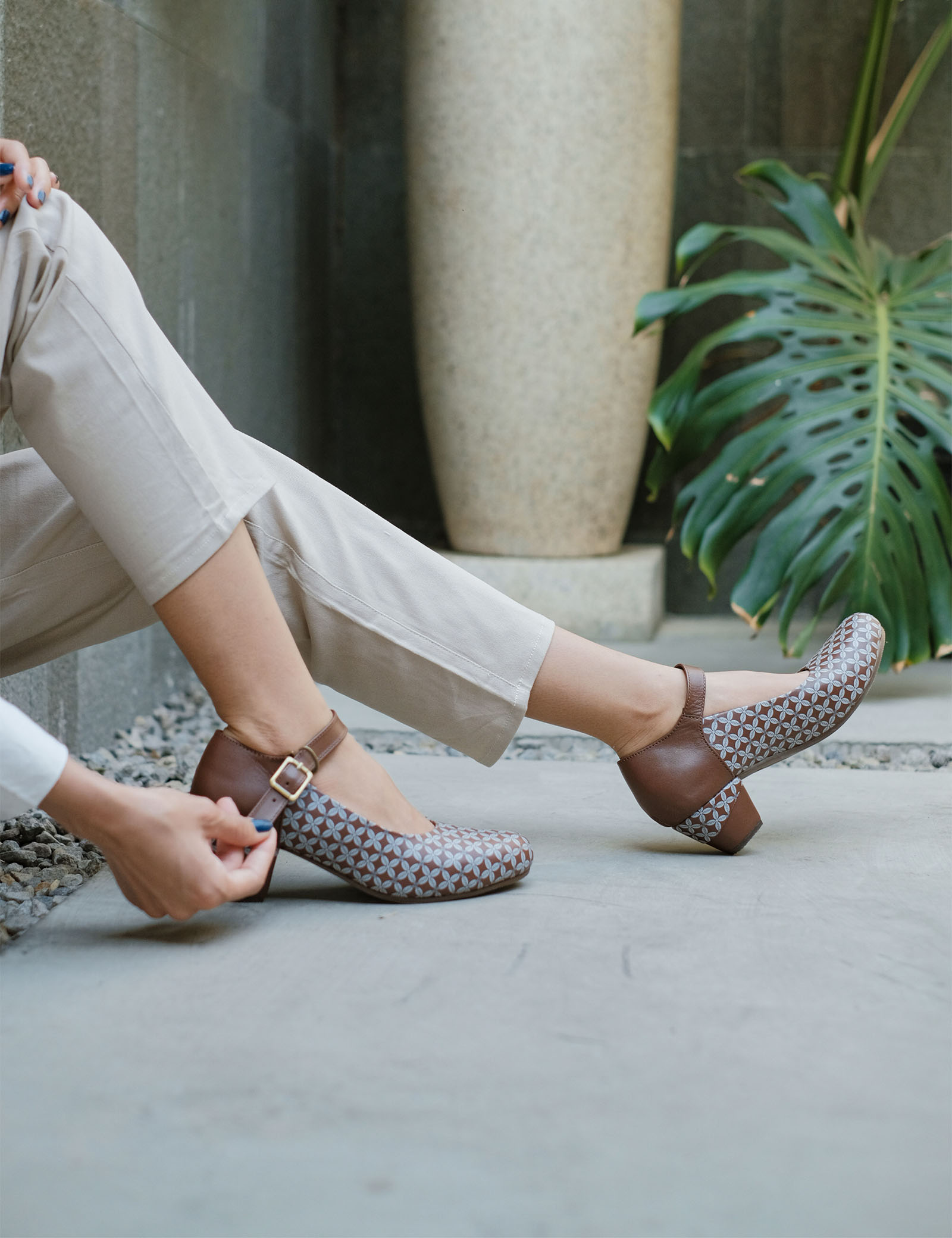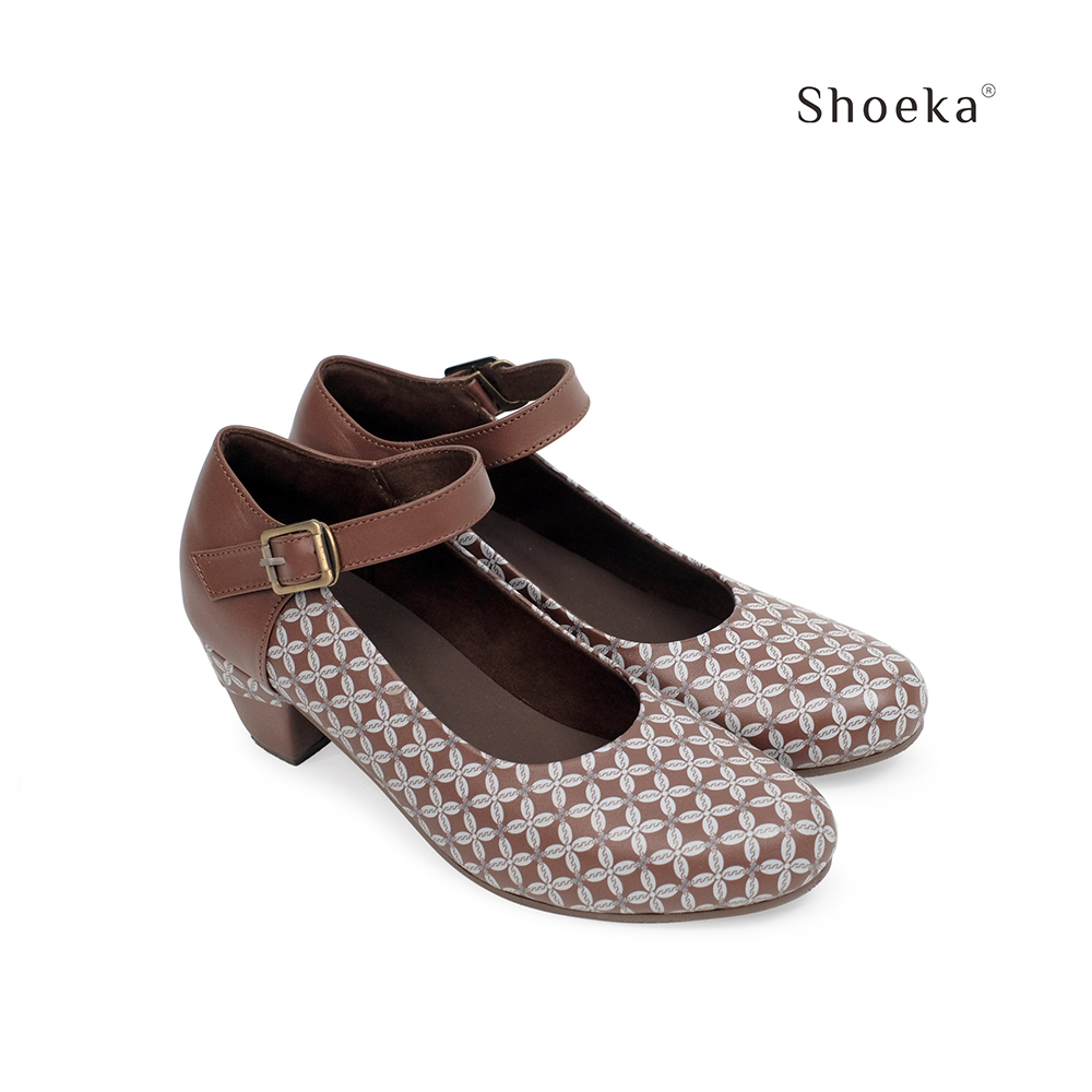 Sepatu Mary Jane Heels 5cm - Kawung Cognac