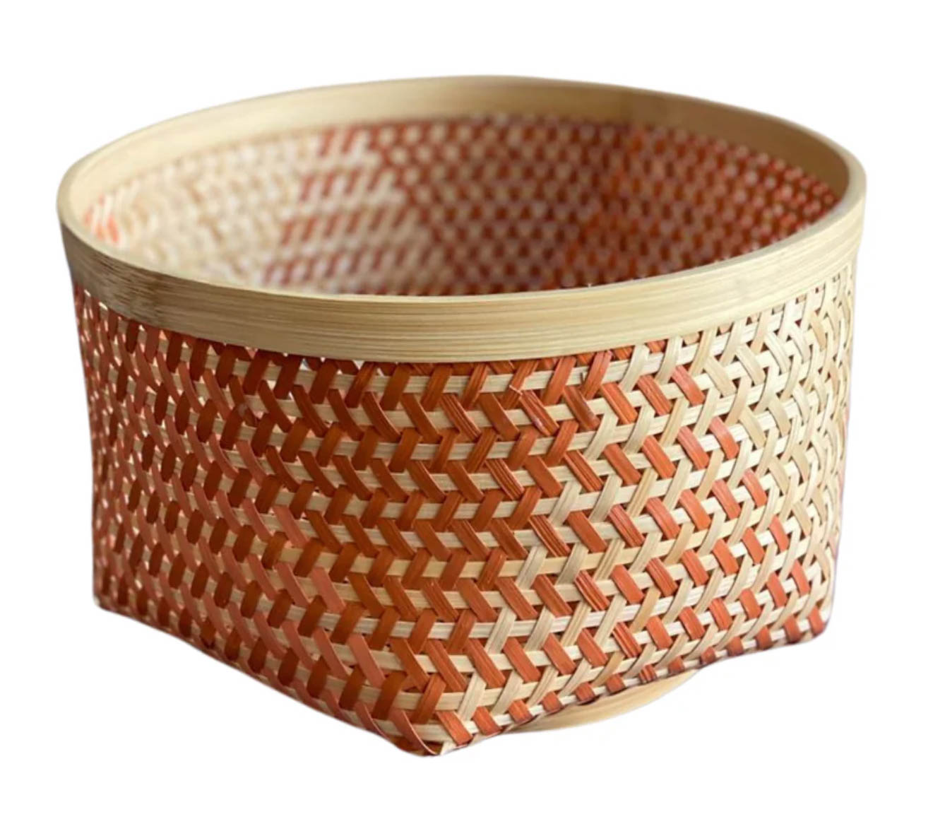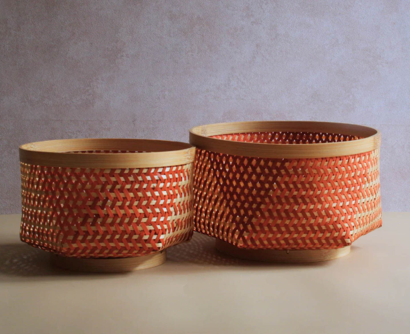 Keranjang bulat berwarna terracotta, ideal untuk pot tanaman atau menyimpan berbagai objek di rumah Anda