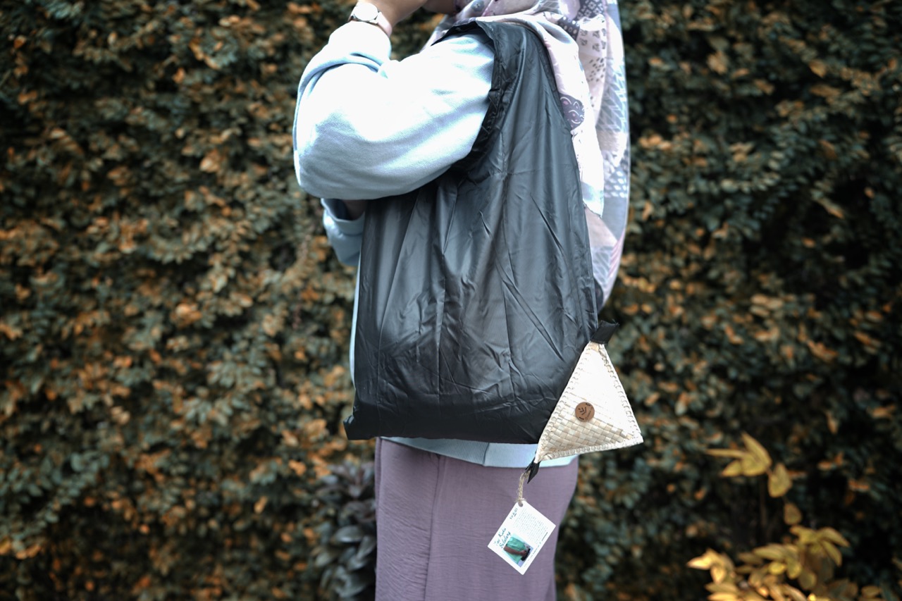 Tas ini merupakan solusi praktis dan ramah lingkungan untuk kebutuhan belanja harian Anda. Terbuat dari bahan parasut ringan yang mudah dilipat, tas ini dilengkapi dengan pouch anyaman pandan khas Kabupaten Siak yang menyerupai bentuk kuku belalang — unik dan fungsional.