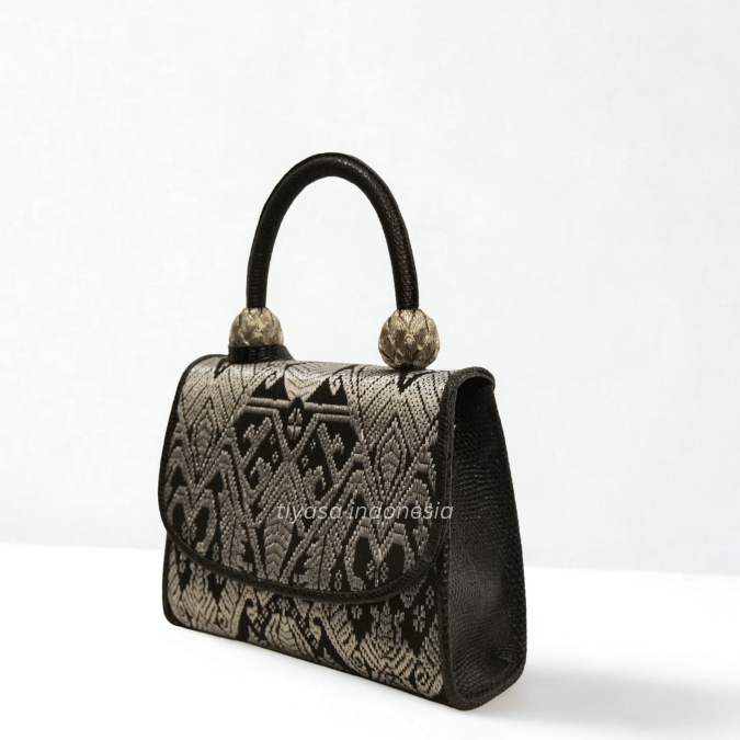 Double Lotus Bag Songket - Black Silver