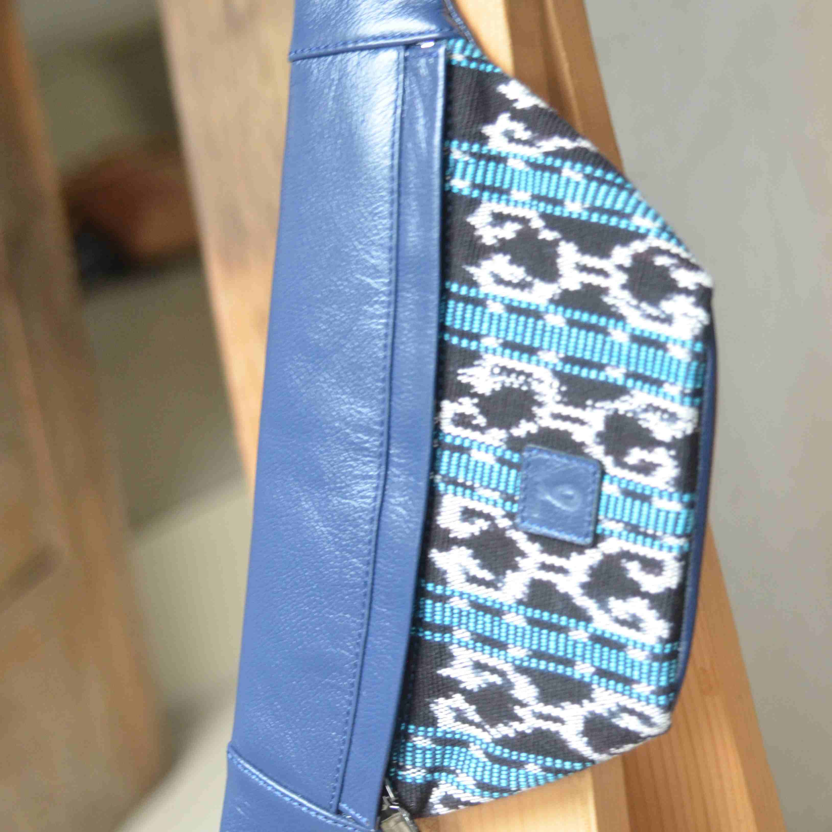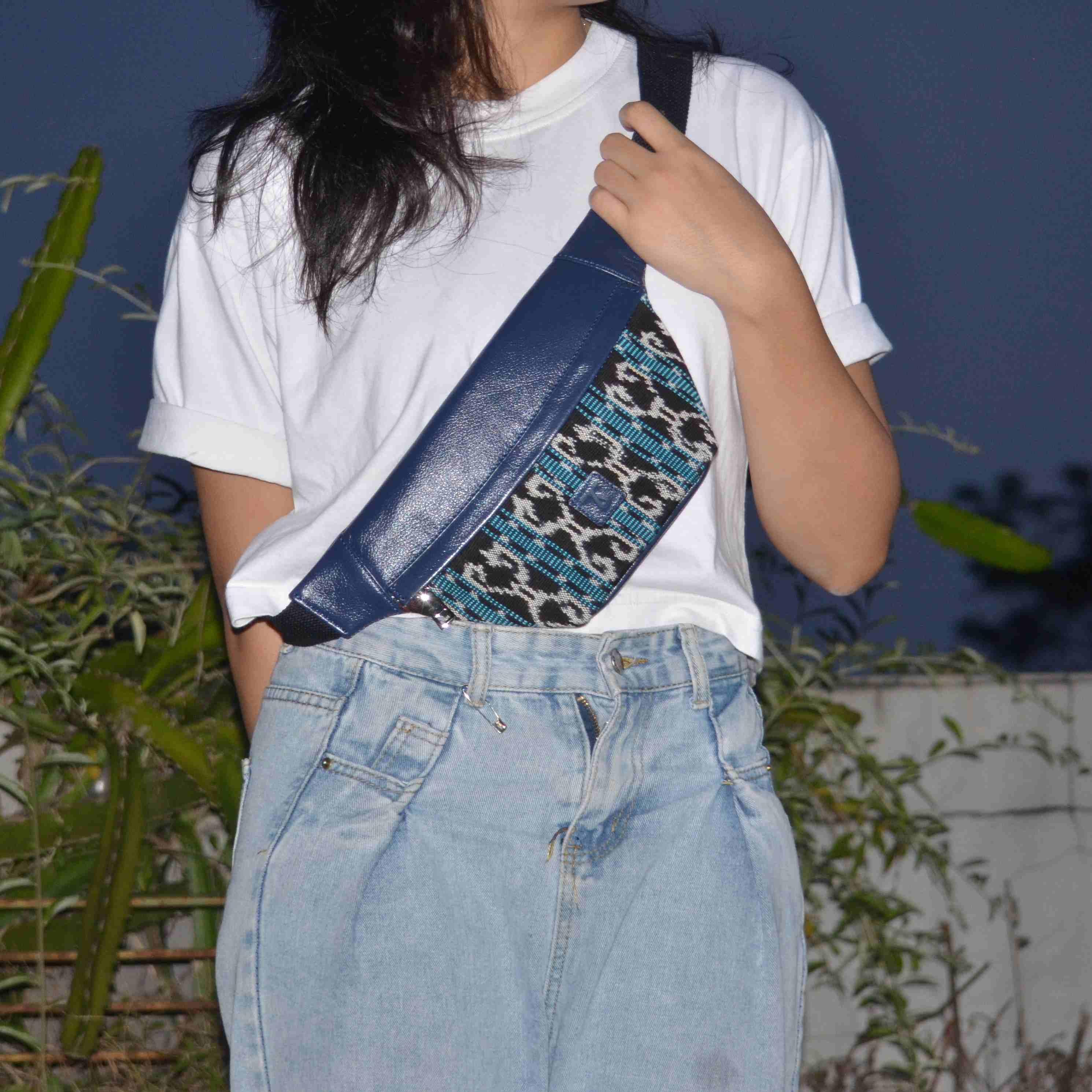 Jenis Bahan: Kulit Sapi dikombinasikan dengan kain tenun tradisional dari daerah Sabu, Nusa Tenggara Timur yang biasa disebut Sarung Sabu. (Cowhide is combined with a traditional woven fabric from the Sabu region of East Nusa Tenggara, commonly known as Sarong Sabu)