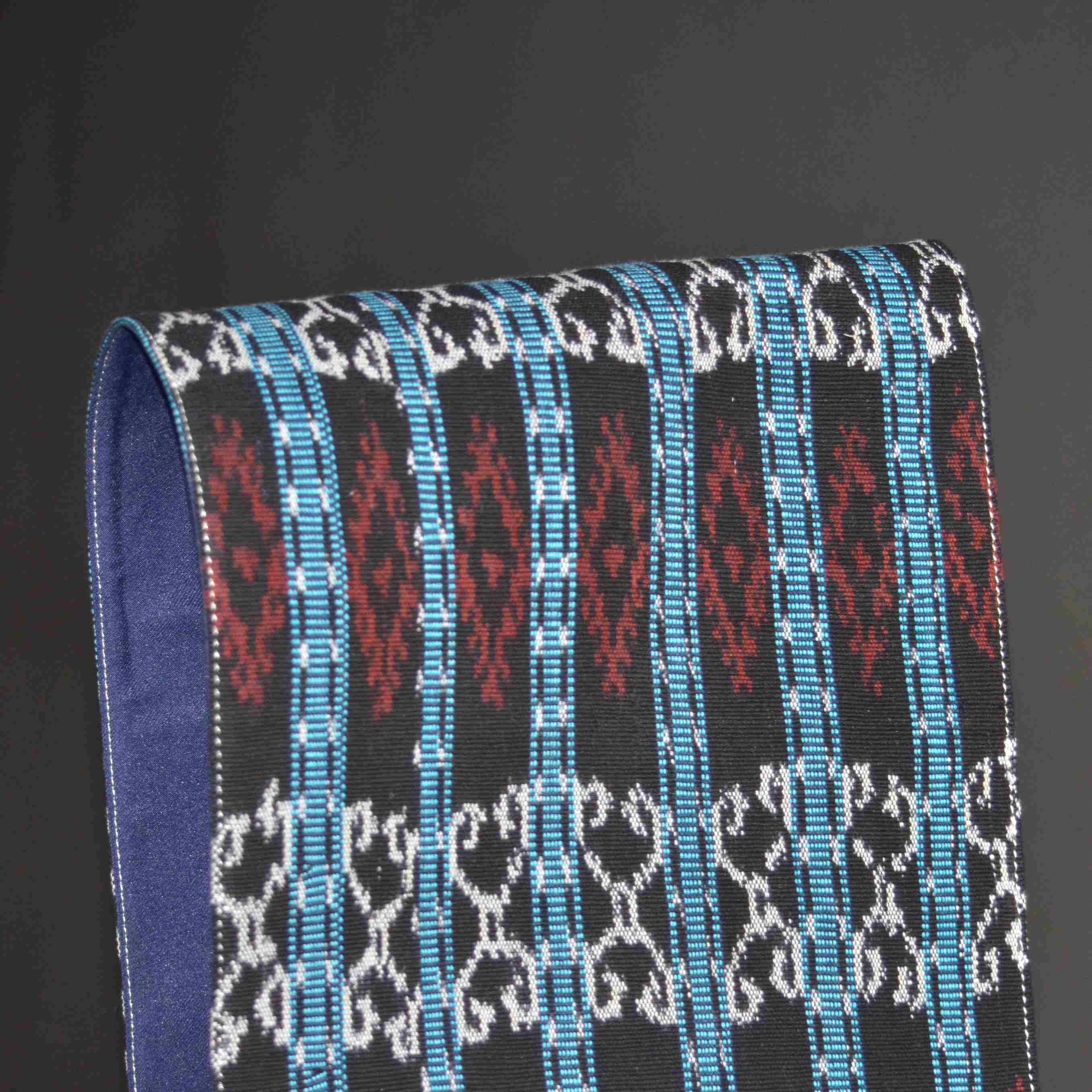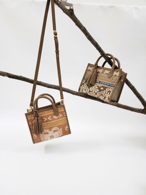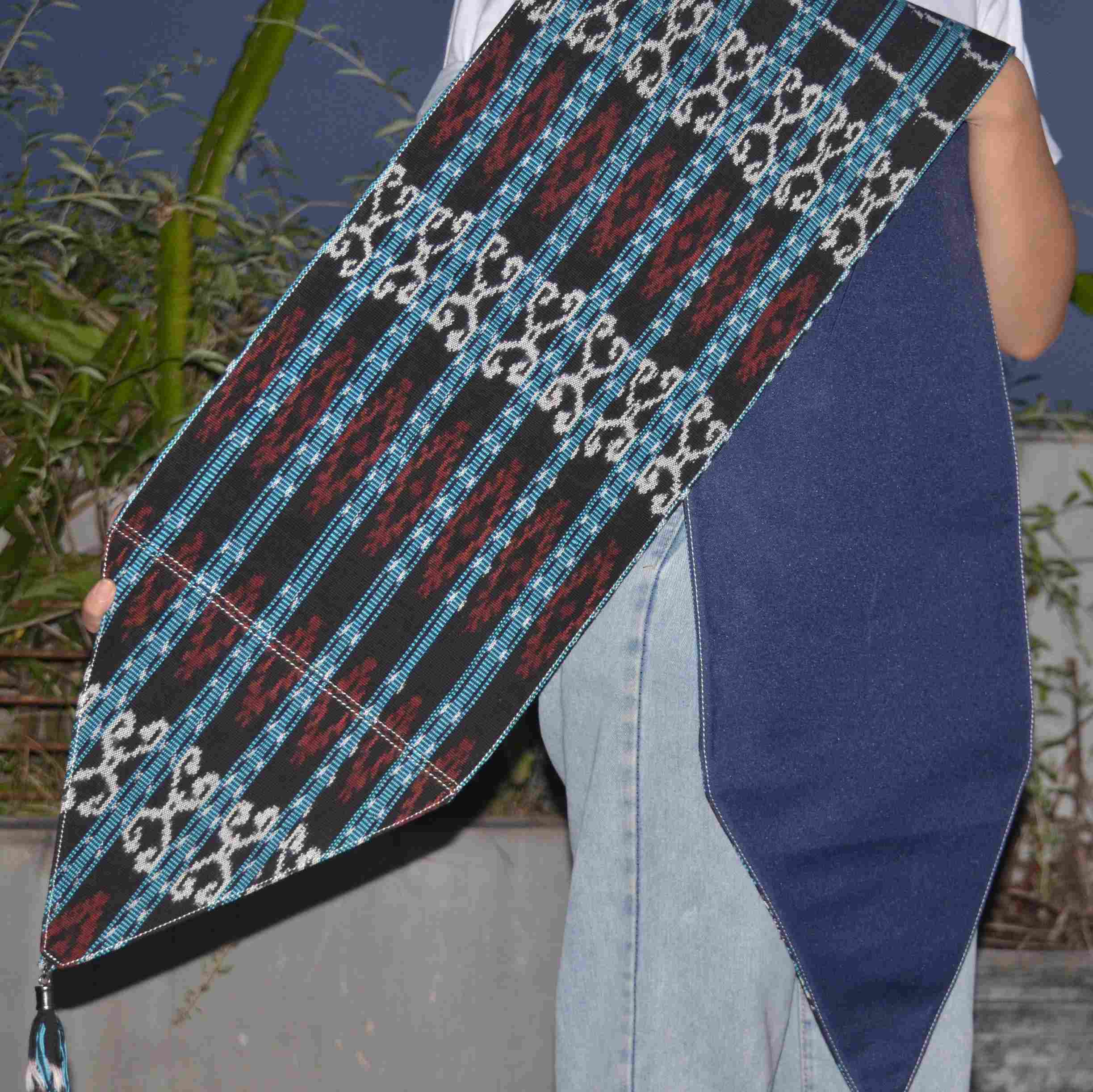 Jenis Bahan: Material nya berupa kain kanvas untuk bagian lapis dalam yang dikombinasikan dengan kain tenun tradisional dari daerah Sabu, Nusa Tenggara Timur yang biasa disebut Selimut Sabu. (The material is canvas fabric for the inner layer combined with traditional woven fabric from the Sabu region, East Nusa Tenggara, commonly called Sabu Blanket)