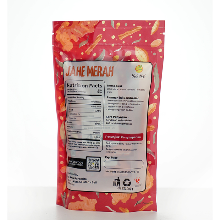 Kandungan Bahan: Jahe Merah, Kayu Manis, Cengkih, Daun Pandan, Gula