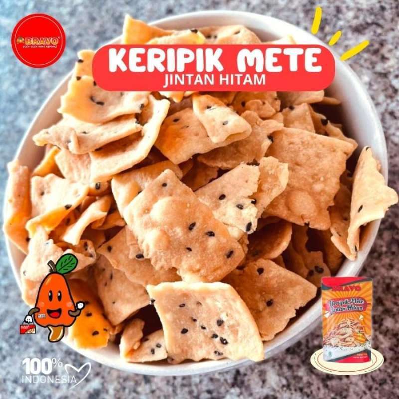 Bravo Keripik Mete Jinten Hitam adalah salah satu camilan inovatif berbahan dasar mete pilihan yang diproses menjadi keripik renyah dengan cita rasa autentik. Produk ini menggunakan bahan baku lokal berkualitas tinggi dari Kendari, Sulawesi Tenggara, dan telah menjadi salah satu best seller dari Bravo berkat rasa gurih alaminya yang khas dan tekstur yang memikat.