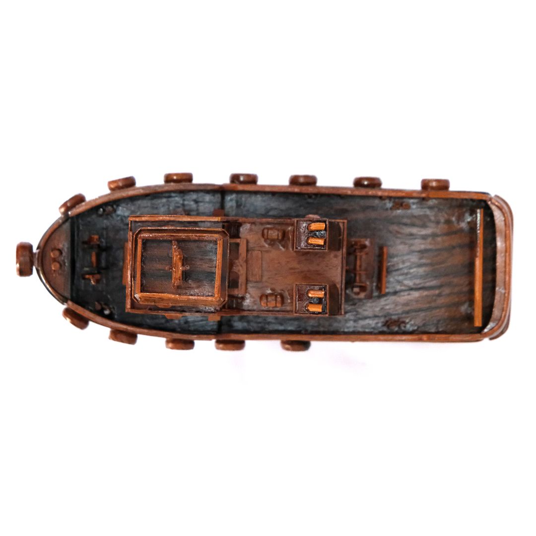 Miniatur tugboat kayu ulin ini adalah replika indah dari kapal penarik yang kokoh dan tangguh. Terbuat dari kayu ulin yang terkenal luar biasa terhadap air dan serangga. Miniatur ini akan menjadi dokorasi yang sempurna untuk rumah, kantor, koleksi pribadi, atau hadiah yang unik dan istimewa untuk siapa saja yang menghargai seni dan kerajinan tangan.