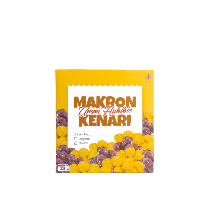 Produk kue kering kenari khas Ternate yg dikemas dalam kemasan sekunder berupa dus yang menarik