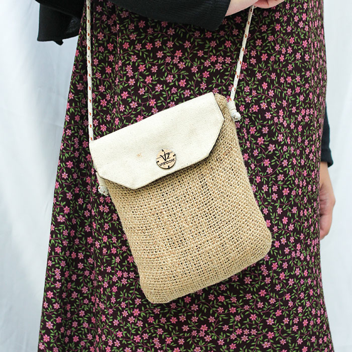 Slingbag berbahan dasar limbah karung goni yang dikombinasikan dengan kanvas. Dilengkapi dengan furing dan penutup magnet.