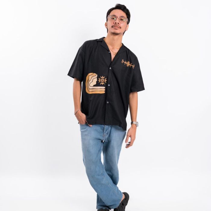 Kemeja hitam motif martha tiahahu - lengan pendek