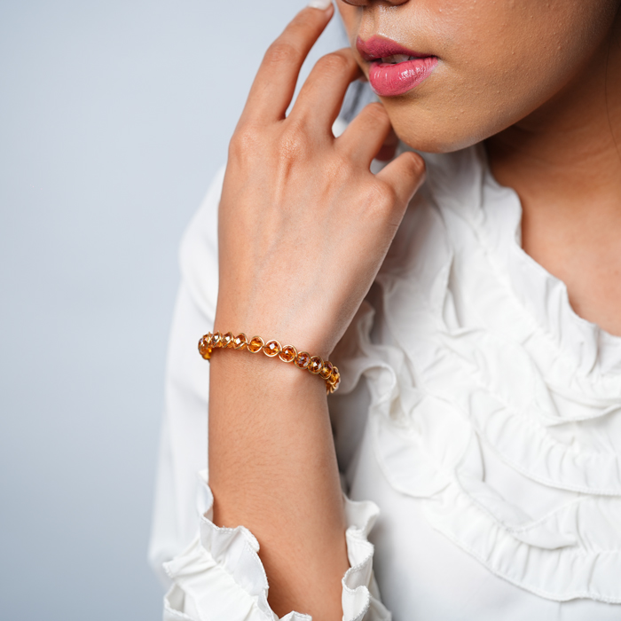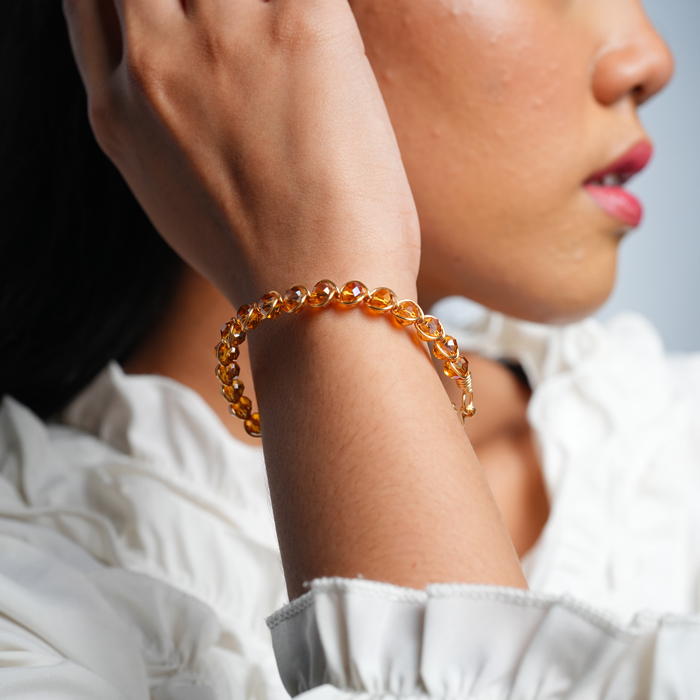 Gelang handmade dengan lilitan kawat tembaga dan kristal, hadir dalam desain simpel dan elegan. Ringan dikenakan sehari-hari, namun tetap memberi kesan manis dan istimewa di setiap detailnya.