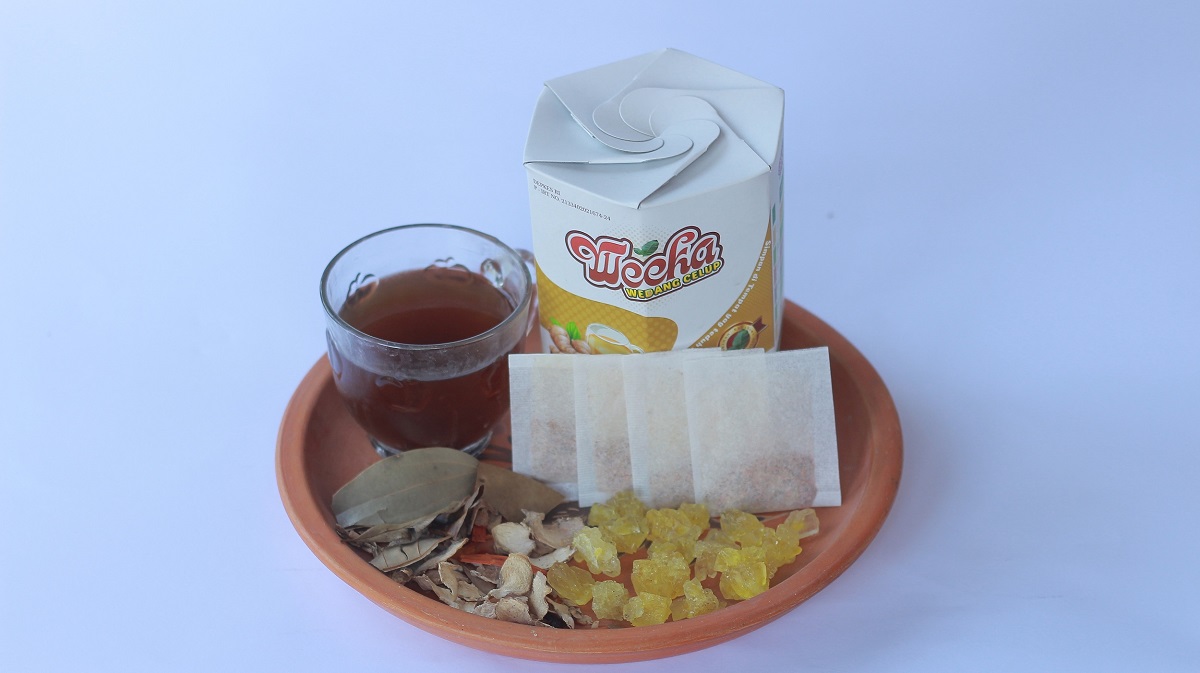 Kandungan Bahan: Jahe, Kayu Secang, Daun Kayu Manis, Daun Cengkeh, Daun Pala, Cengkeh dan Kapulaga