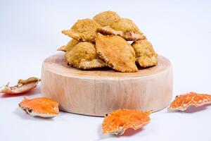 Oleh-oleh kepiting khas pulau Belitung yang terbuat dari daging kepiting (rajungan) tanpa campuran tepung (gluten free), tanpa pengawet dan pewarna buatan, mudah untuk dikonsumsi dan memiliki cita rasa yang enak .