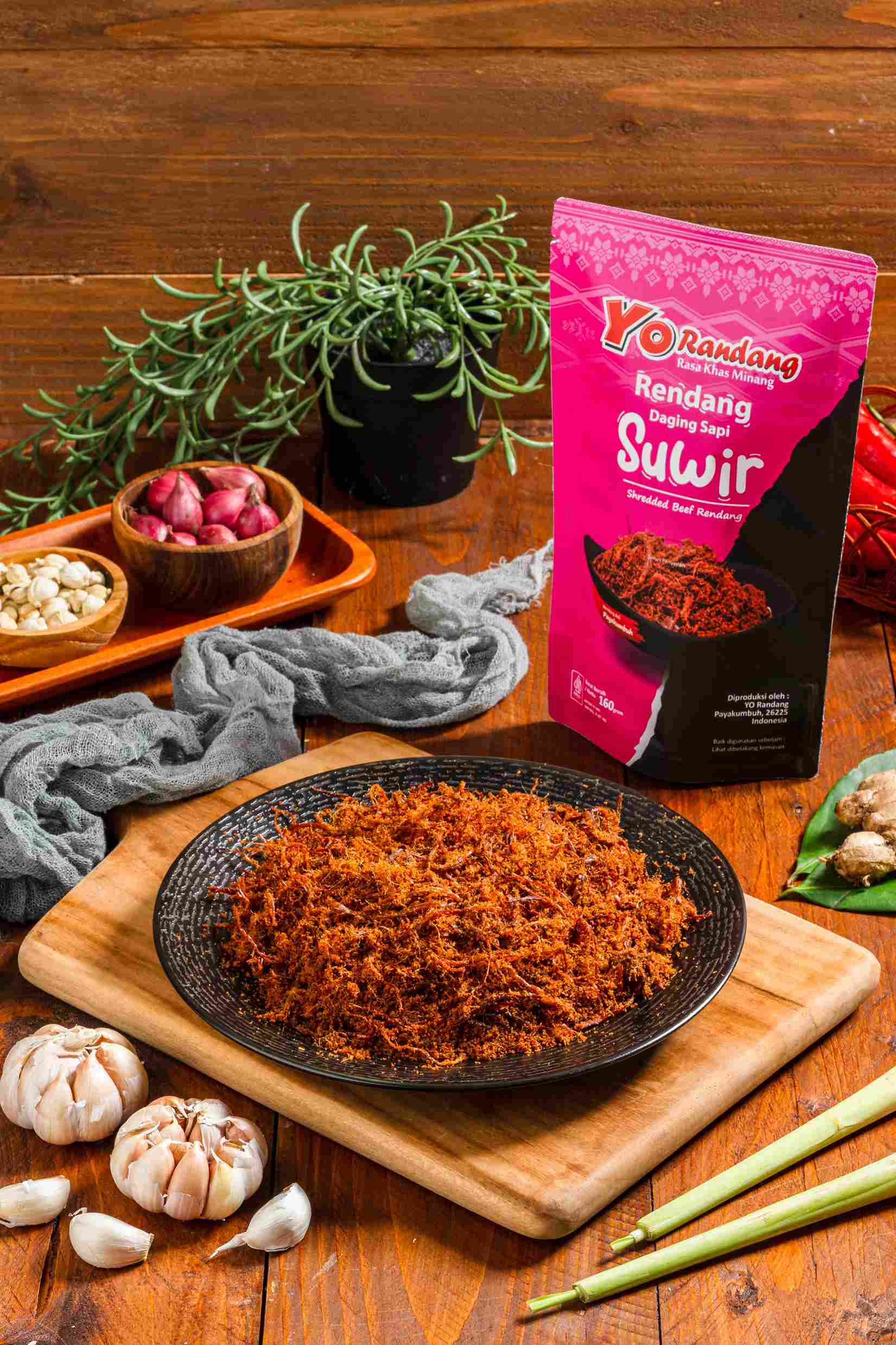 Rendang Daging Suwir merupakan olahan daging sapi segar yang di suwir kemudian dimasak dengan bumbu rendang khas Minang hingga garing. Melalui proses pengeringan untuk mengeringkan minyak pada rendang sehingga menjadi kering. Tanpa tambahan gula, penyedap atau pengawet.